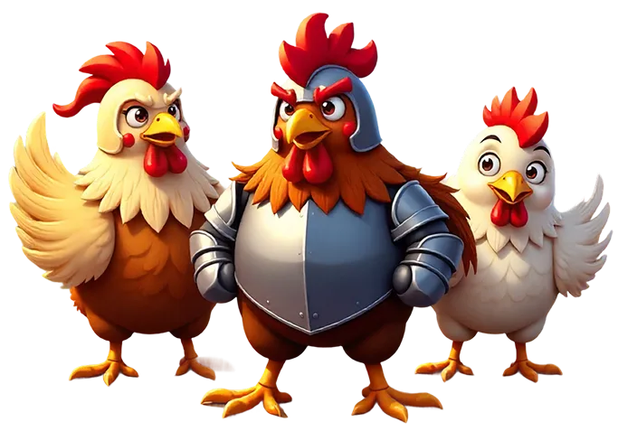 Chicken Knight is a social game designed purely for entertainment. It has no real-world value, and all gameplay uses virtual coins/items that cannot be exchanged outside the game. Success or practice within the game does not influence outcomes in real-world games of chance. For adults 18+.
